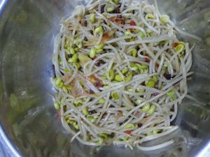 放入豆芽加水煮沸
