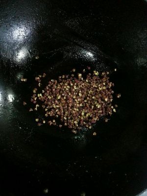 花椒放到炒锅里小火干煲,炒出香味盛出一半