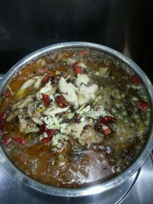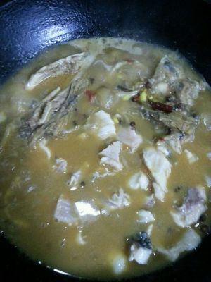 放入鱼骨,炖大概二十分钟左右