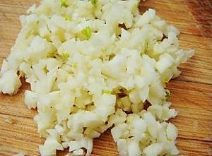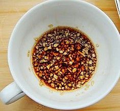 蒜切蓉,与生抽,盐,陈醋,少许糖,凉白开,香油和辣椒油搅拌均匀。