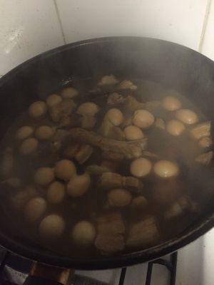 倒入鹌鹑蛋 转小火大概35-40分钟 加冰糖大火收汁