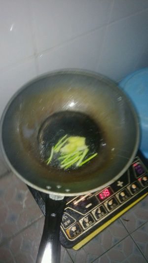 热油锅炝香姜片和葱白(先下姜后下葱)