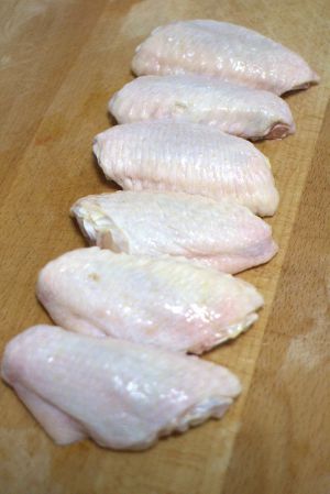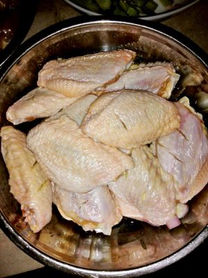拿刀把翅中划开(方便入味儿)葱切段儿姜切片儿