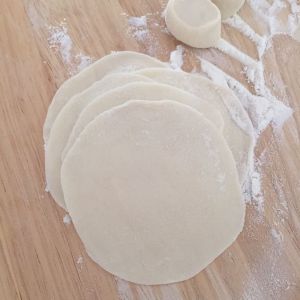 揉成面团,盖上湿布或盖子,放阴凉处半小时。期间可以准备馅料。
