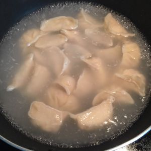 水开饺子就可以下锅了,期间点三次水。具体点水的原因我也不知道,只是觉得那皮薄馅大的饺子一直在水里翻腾迟早要破皮,所以就坚决不能大尺度的翻啊滚啊!