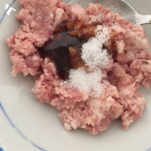 猪肉剁好,放入蚝油、盐、糖调味,加清水往同一方向搅打上劲。以前有朋友看我加水在肉里,说我有病乱搞饺子馅。不加水的肉馅又干又柴,难吃死了,好么!而且加水后煮出来就有灌汤的感觉也