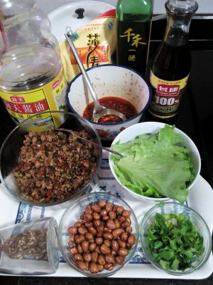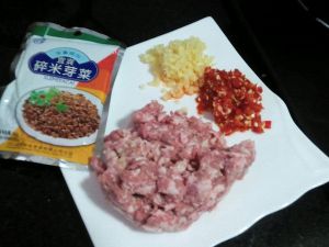 五花肉剁成肉末,姜切姜米,泡椒剁成末(泡椒是做菜剩下的,所以格外加的)碎米芽菜