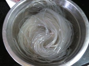 食材准备,晚上提前把红薯粉丝用开水泡软,沥干备用