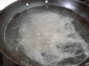 烧一锅开水,把泡好的红薯粉丝稍微汆烫十几秒捞出
