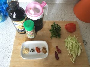 把买来的番薯粉丝泡进水中,我没经验,先用了冷水泡了半天,还是比较硬,后来用热水泡,20分钟就软了~