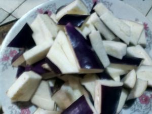 茄子清洗,去皮,切丝,丝的粗细大概就是麦当劳薯条那么粗就行