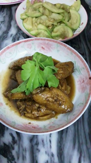 鸡翅先用水过一下(放姜跟葱为了去味)