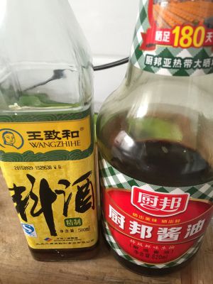 飞过水的鸡翅,很容易就洗干净浮沫和绒毛,另取一块生姜拍扁,干葱头4瓣拍扁;