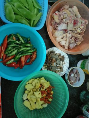 喜欢的话加点土豆也很好哦生姜、蒜头都洗净切好备用,我明明买 了大葱的,回家硬是找不到了,青椒也拉在车子里,以为自己丢了。