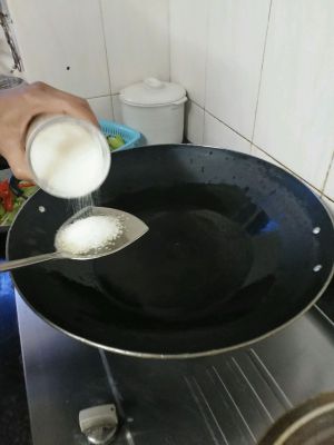 放入一匙豆瓣酱,继续抄,抄出红油!!