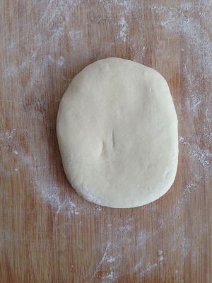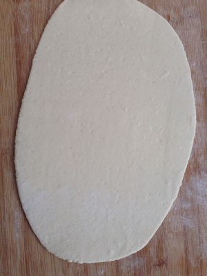 白面团稍揉,用手压成长方形。