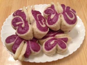 蒸好的蝴蝶馒头。