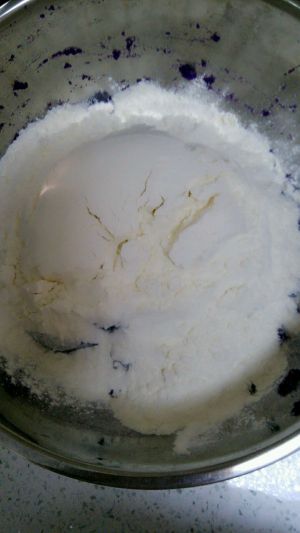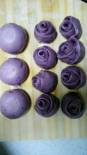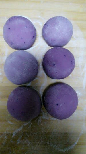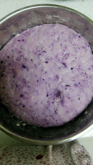 将紫薯泥和面粉揉成光滑的面团,放盆内静置,待发成两倍体积大,开始准备。