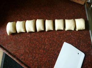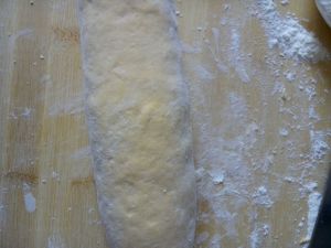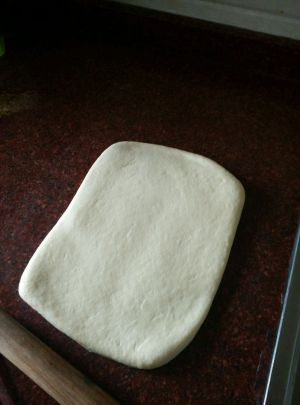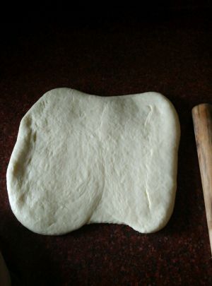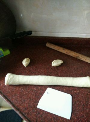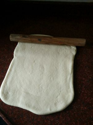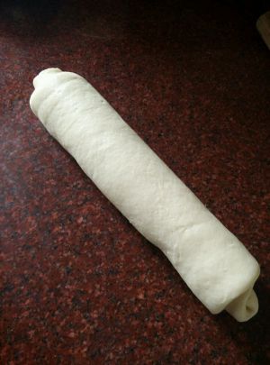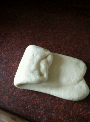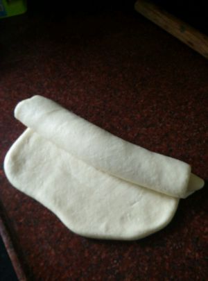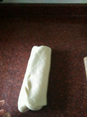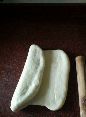 温水把适量发酵粉,等面发酵好了以後(我是放在电热毯里发酵的)弄成一个大的配一个小的面团