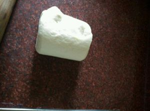 直到揉成光滑的面团,盖上盖子开始发酵,面团发到比原来的两倍大,用手指在面团上戳个洞,洞口不塌,不回缩就表示已发好
