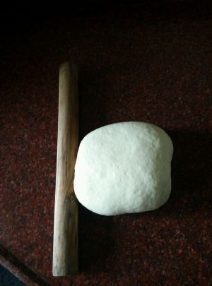 在案板上洒上面粉,一直揉,把里面空气排尽
