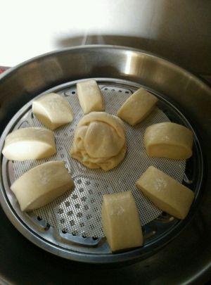 放入蒸锅,二次发酵到比原来大二倍后,大火烧开水,转中火15分钟,关火闷5分钟再开盖