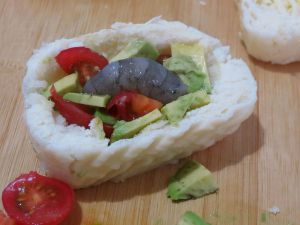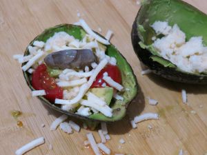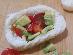 牛油果果壳刚好可以用来放碎了的馒头,又是另一种组合。