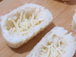 放入撒上奶酪芝士的馒头中。