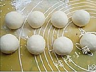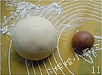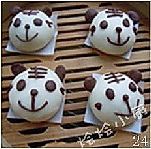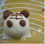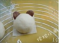 把揉圆的小面团按扁,粘在包好奶酥馅的面团上做巧虎的耳朵。