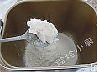 面种的制作过程: 在材料1中取少许牛奶溶化即发酵母。