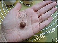 从可可粉面团取2个3克的面团,揉搓成圆形。