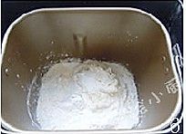 巧虎馒头的制作过程: 将材料2的所有材料一起放柏翠面包机桶内。