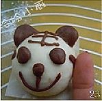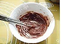 另取少许面粉+可可粉揉成团擀成薄片,用可可粉面皮包住上半截。