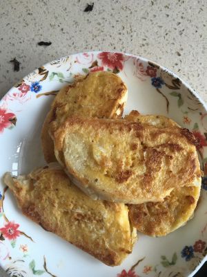 平底锅里放少许油,开始热锅,可以将馒头放进蛋液里两面蘸蛋液,就马上放进平底锅里小火煎,切记,一定不要在蛋液里泡太久,而且最好一片片蘸蛋液,蘸完马上入锅