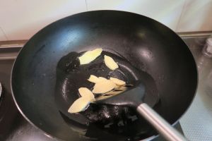 锅中热油,放入姜片炒香。同时烧一砂锅水