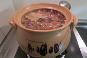 烧开后,倒入之前的炖锅,小火炖30分钟,打开用筷子戳一戳。