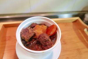加入生抽,老抽,再把之前的牛肉汤倒入,漠过牛肉,大火烧开。
