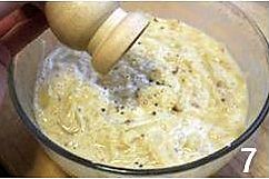 西葫芦丝加盐和白胡椒粉拌匀腌渍至有大量水渗出待用;