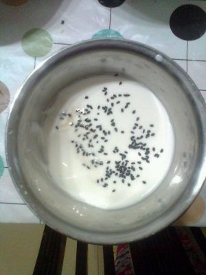 然后加入菌粉(淘宝有买的)或者一小瓶酸奶,再加点白砂糖搅拌均匀