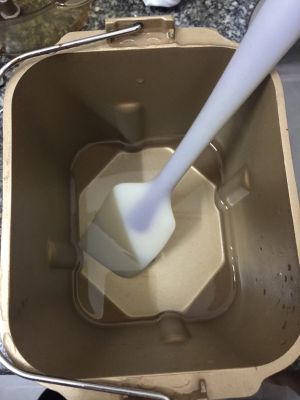 面包机桶和用来搅拌的刮刀用开水泡一会儿,消消毒