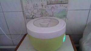然后将搅拌好的酸奶放入酸奶机里插电发酵8~12小时;