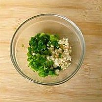 葱和蒜切成末放碗里,浇上一勺热油,烹出香味;