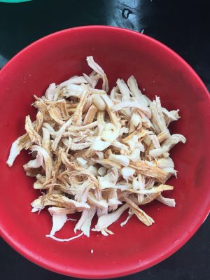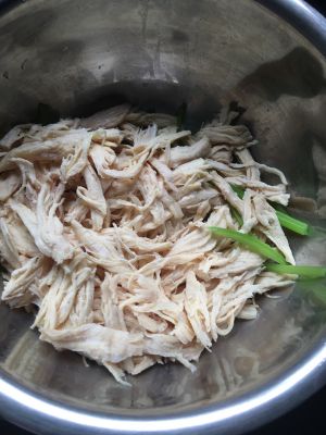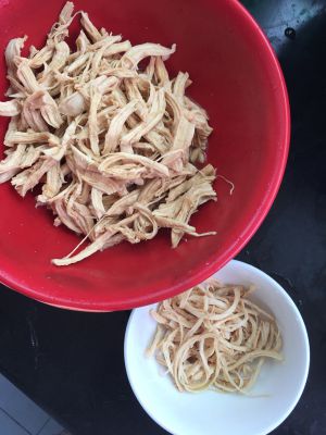 熟鸡肉撕成鸡丝,