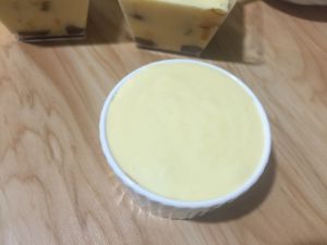 加入泡软的吉利丁片,吉利丁片遇热会融化,拌均匀,放凉备用