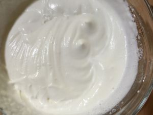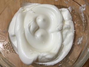 细砂糖加水中小火煮沸。加入蛋黄。慢慢倒入,打发到3倍大。