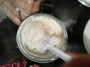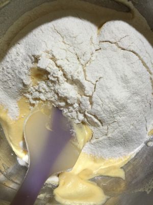 把放凉的奶酪糊倒入奶油的盆里,搅拌均匀即是马斯卡彭糊