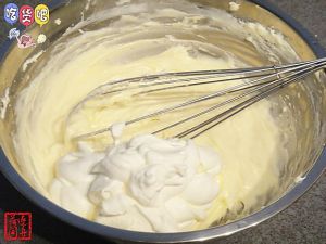 奶油打发软性发泡与马斯卡彭奶酪搅拌均匀