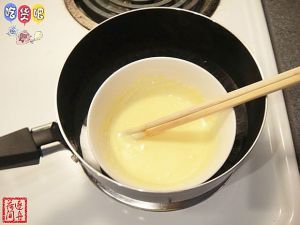 然后把水和糖加一起,加热80度左右不要滚否则蛋黄就熟透,把糖水慢慢一定要慢慢的加入蛋黄液中,并高速搅拌散热!这步骤主要是杀菌,不介意生蛋黄的可以忽略