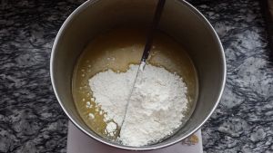 加入90g面粉和45ml水,糖