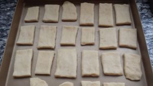 预热烤箱,180度。把面团分成一个大概15克,尽量均匀,不然很容易造成有些没烤熟,有些焦了!抓一个小球,然后按扁就行,依次做好。我是38升烤箱,烤了2盘的。